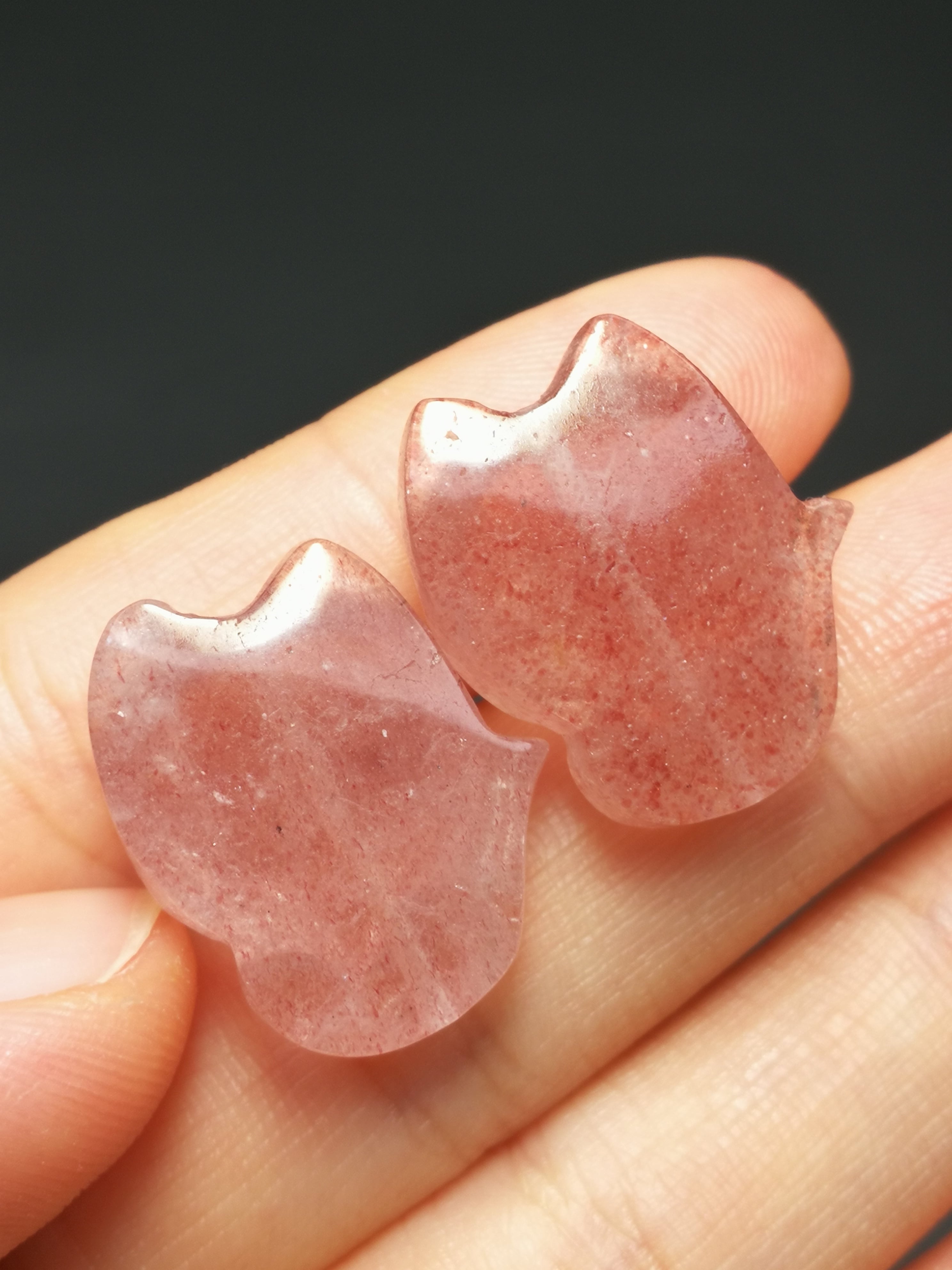 0115 ストロベリークォーツ狐さん16*21ミリ2点セット 貫通穴