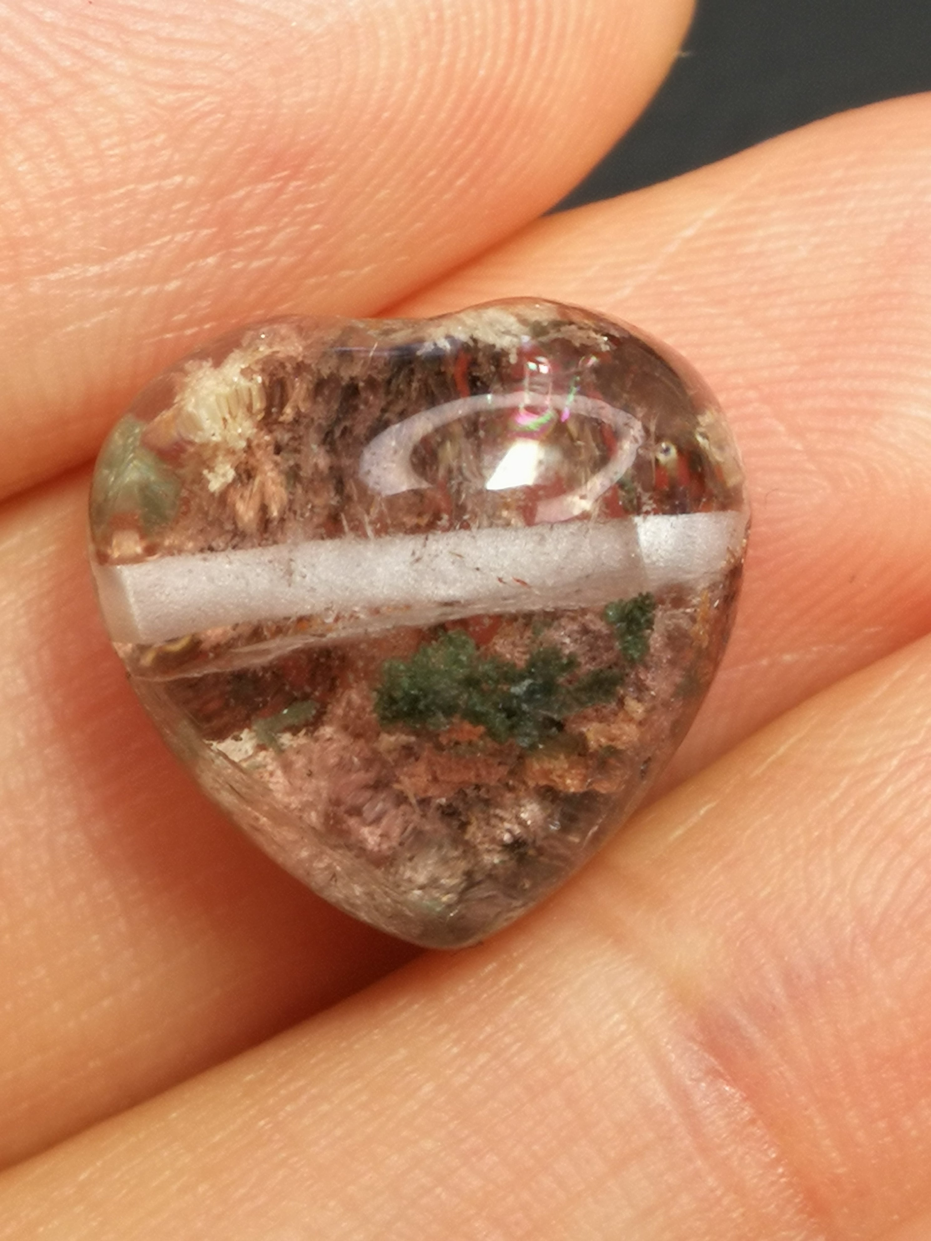 0125 虹入りガーデンクォーツのハート型 横貫通穴